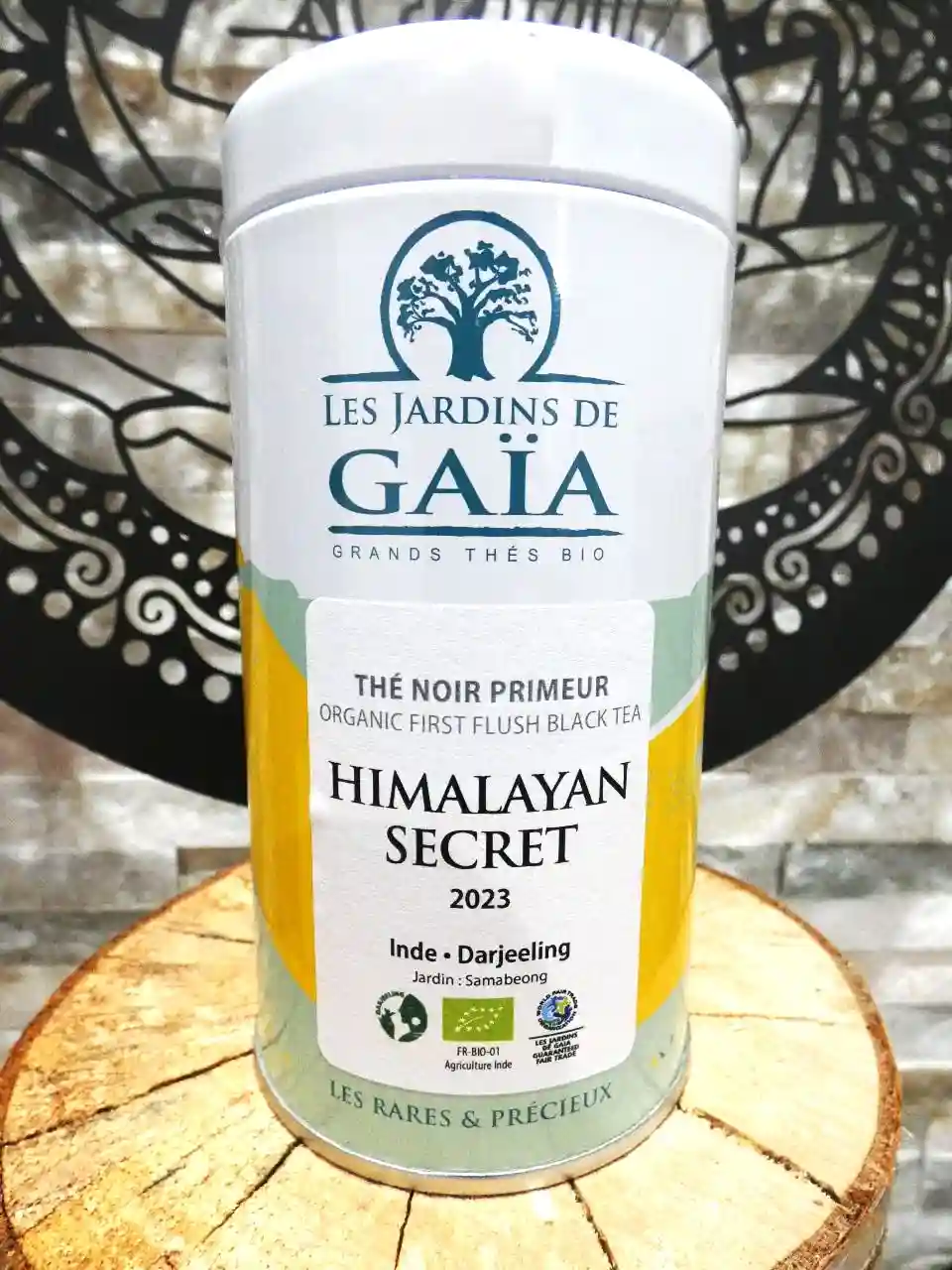 Le Himalayan Secret bio (50g), proposé par Ker-Gaïa, est un thé noir primeur d’exception du Darjeeling, certifié biologique (AB), commerce équitable (WFTO) et IGP Darjeeling. Récompensé par des médailles d’or (2021) et d’argent (2023) au Concours International « Les Thés du Monde » AVPA, ce thé offre une liqueur veloutée aux saveurs de biscuit, pêche au sirop et orgeat. Ses petites feuilles vertes et dorées, agrémentées de pointes duvetées, capturent la vivacité des récoltes printanières. En tube métallique recyclable, il allie élégance et écoresponsabilité. Parfait avec un dessert aux fruits ou une pâtisserie légère, ce thé invite à la contemplation. Laissez-vous charmer par ce cru rare pour un moment de pur délice