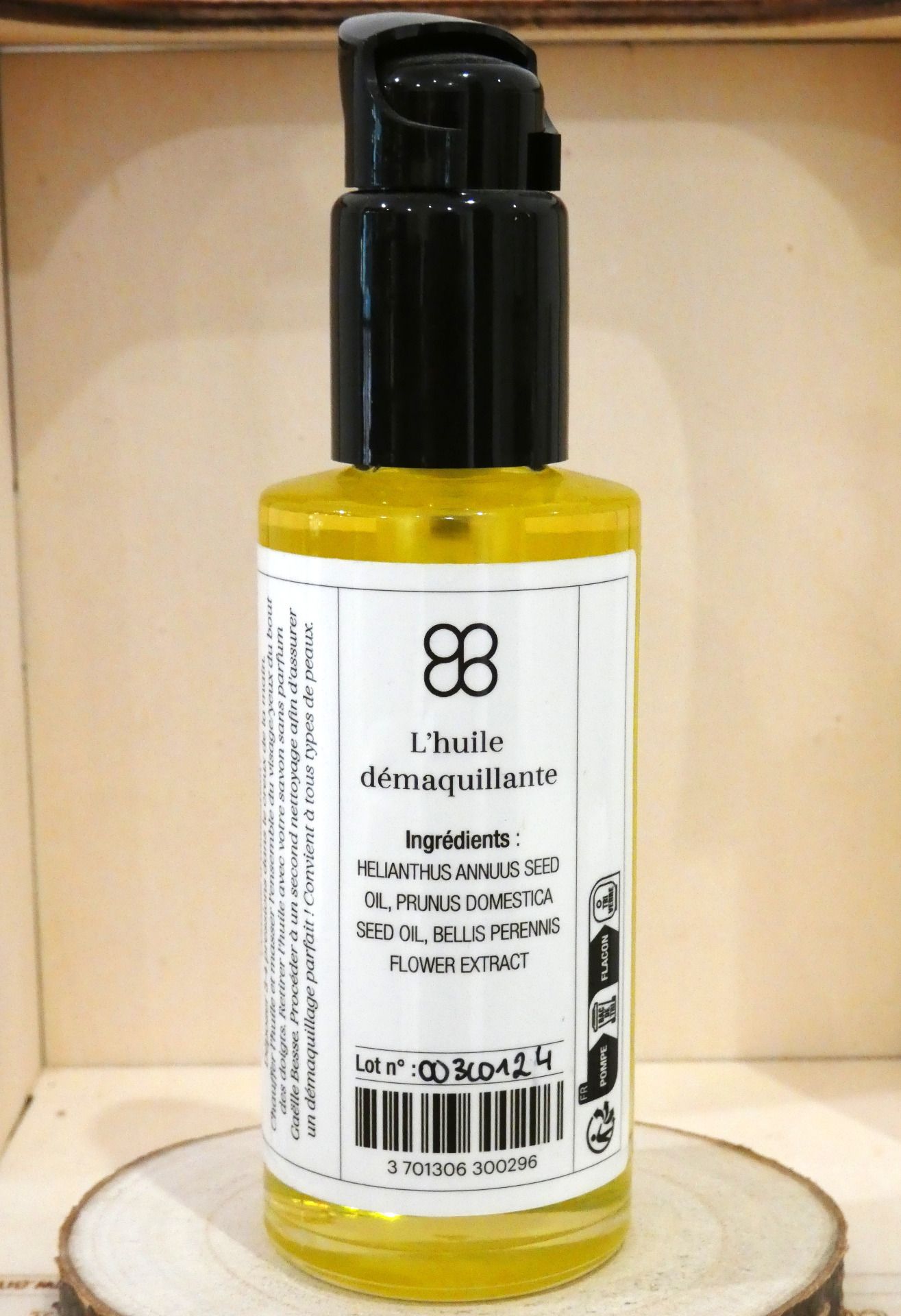 - Composition (INCI) : Helianthus Annuus Seed Oil, Prunus Domestica Seed Oil, Bellis Perennis Flower Extract.