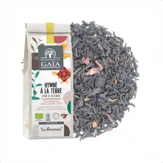 Découvrez l'Hymne à la Terre, un thé noir bio aux saveurs fruitées de myrtille et de cassis. En dégustant ce thé, vous soutenez l'association "Les Amanins" et contribuez à un monde plus juste et solidaire.