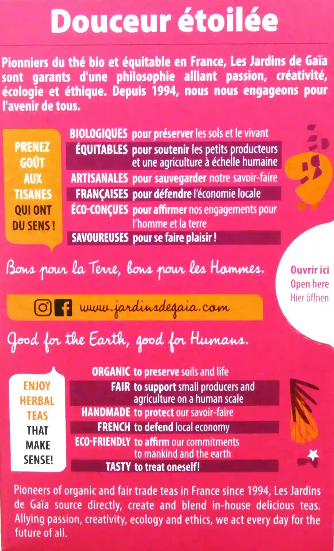 - Conditionnement : 20 infusettes de 1,5g (30g), biodégradables, zéro déchet.