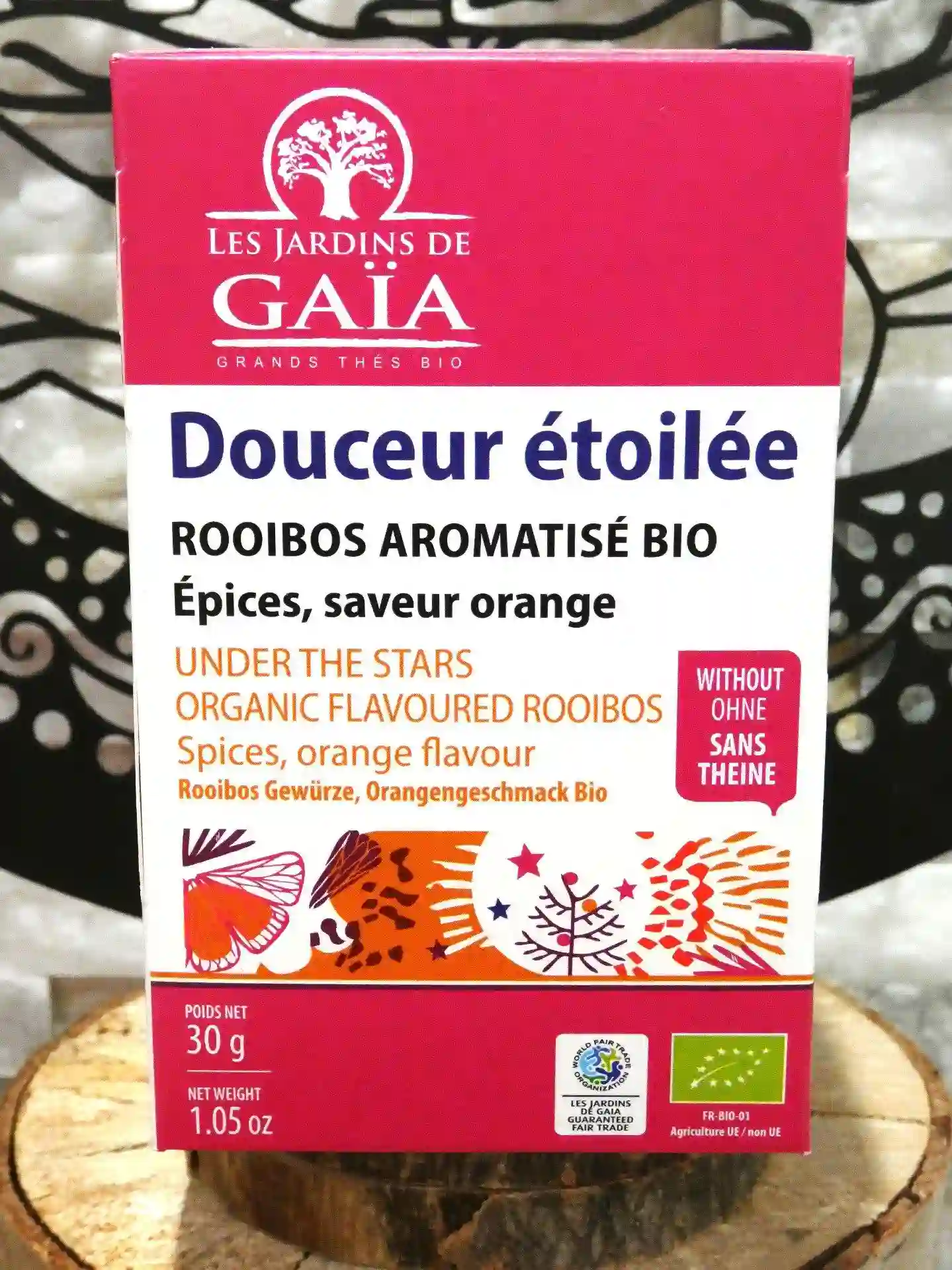 À tout moment, le Rooibos bio Douceur étoilée (20 infusettes, 30g), proposé par Ker-Gaïa, enveloppe les sens d’une chaleur réconfortante. Certifié biologique (AB) et équitable (WFTO), ce rooibos sud-africain mêle ses notes boisées et vanillées à une constellation d’épices, d’orange douce et de touches fruitées de pomme et fraise. Tel un ciel étoilé, il invite à partager un instant magique en famille. Présenté en infusettes biodégradables pour un impact minimal, il incarne l’écoresponsabilité. Parfait avec une tarte au citron meringuée, des biscuits à la cannelle ou un tajine aux fruits secs, ce rooibos sans théine ravit petits et grands. Adoptez-le pour un moment chaleureux !