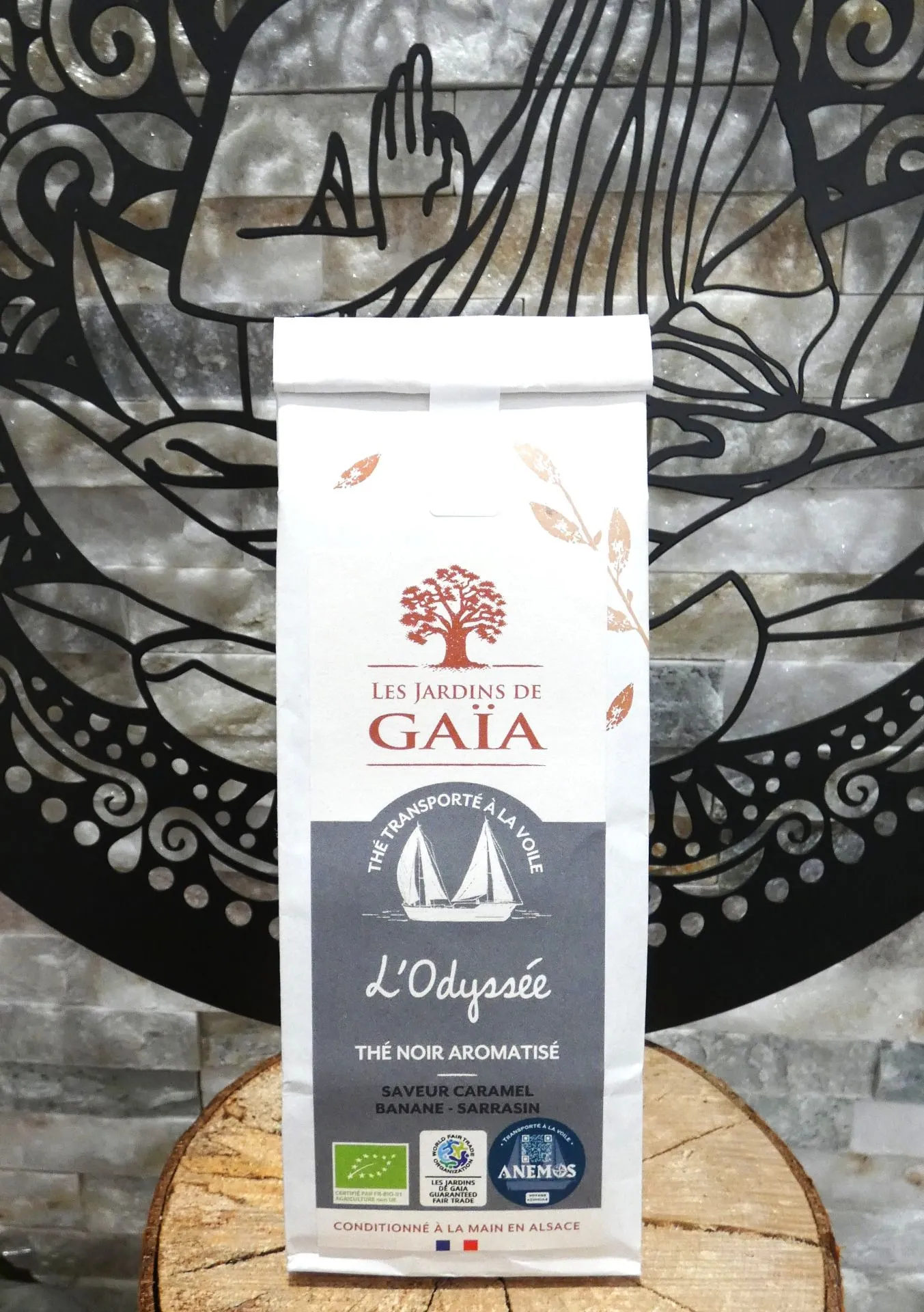 Thé noir L'Odyssée (80g). Bio, caramel, banane, sarrasin. Voile, équitable, zéro déchet. Ker Gaïa Redon.