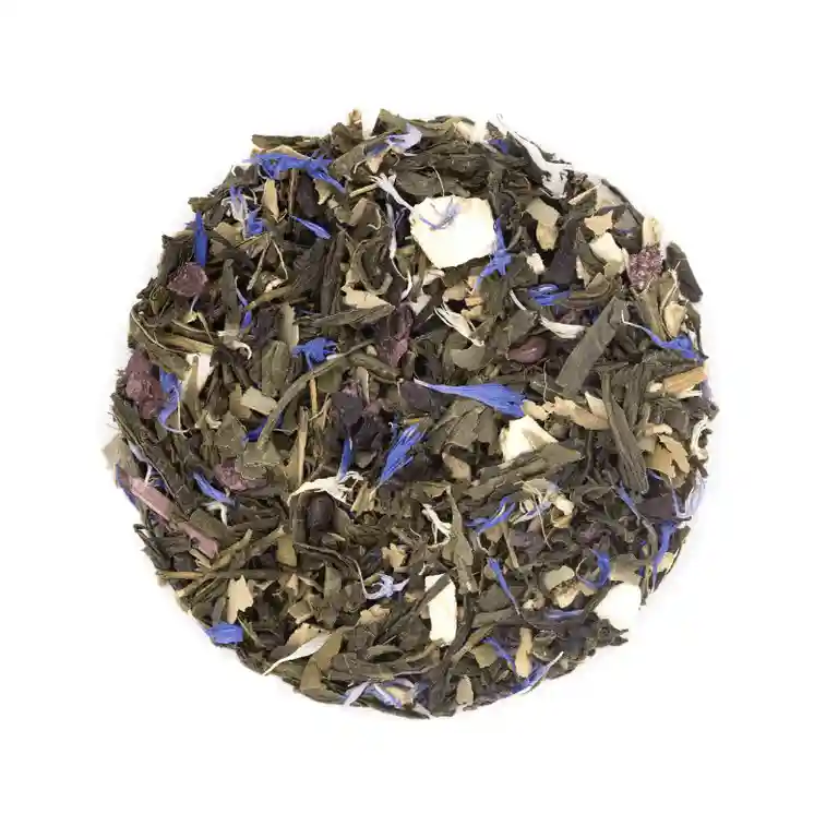 - Composition : Thé vert, Marc de raisin, Gingembre, Feuilles de cannelier, Écorces d’orange, Arômes naturels de figue et amande (7%), Huile essentielle d’orange, Pétales de bleuet. 100% d’ingrédients d’origine naturelle, 100% issus de l’agriculture biologique.