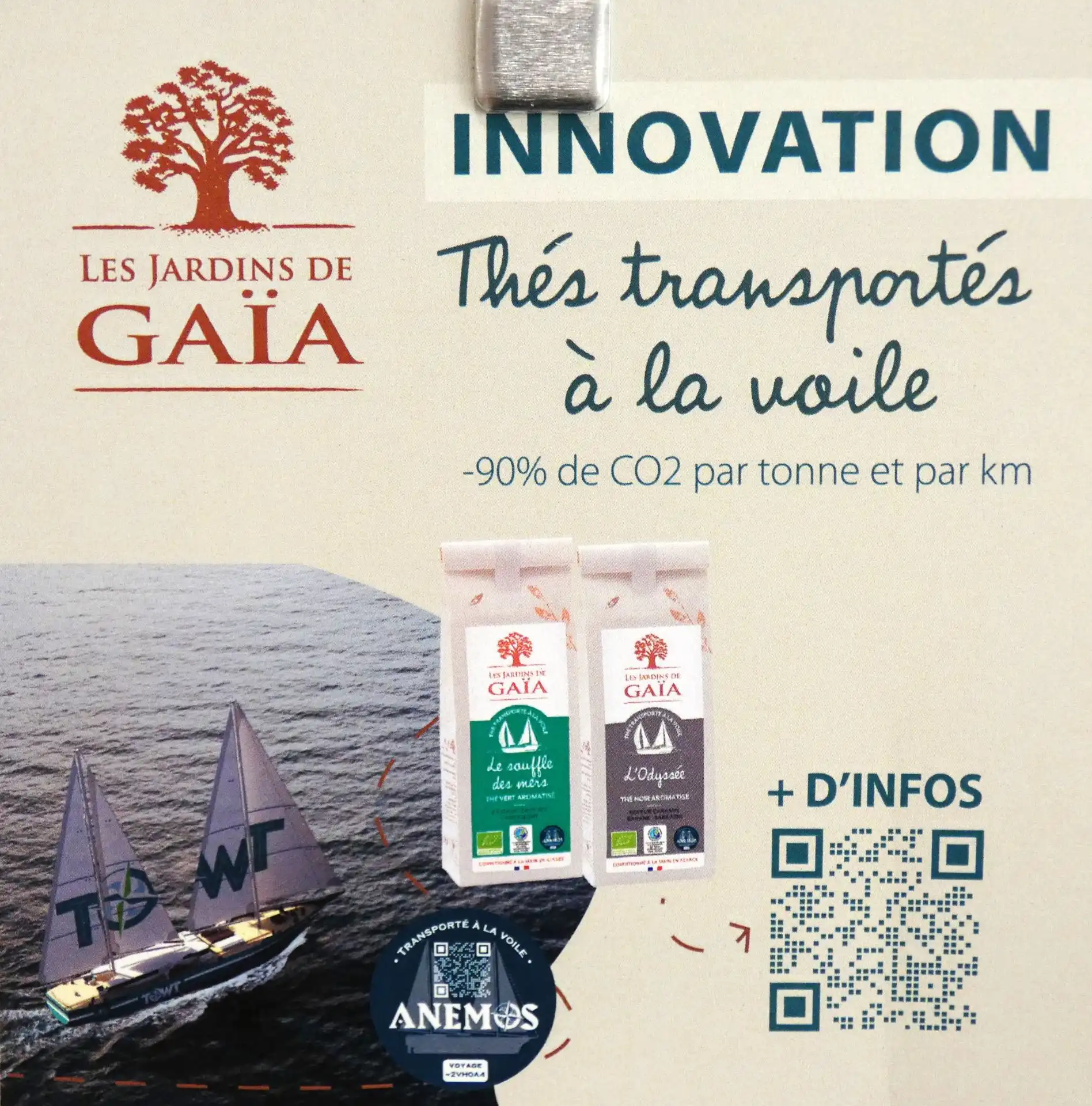 - Certifications : Agriculture biologique (AB), commerce équitable (WFTO), transporté à la voile.